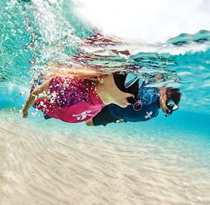 Let’s start simple––snorkeling. You really don’t need much for snorkeling. If you’re in warm water and you’re just looking for sun protection, a rashguard and some UPF leggings will do the trick. If you’re snorkeling in colder waters, you could always don a smaller wetsuit like a 2.5mm or less. That is, of course, unless you’re snorkeling in the Arctic sea, then you may actually want a dry suit for your adventure. Again, just like with diving, the thickness or style of your gear will depend entirely on the temperature of the water. But if you’re snorkeling during the summer in South Florida like we do, just a rashguard will do.