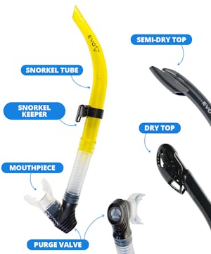 Both have a splash guard at the top of the snorkel tube to help keep water out. With a semi-dry snorkel, some water will still get into the tube and you will need to expel that water. With a dry snorkel, there’s a device that moves to cover the opening so that no water gets into the tube.